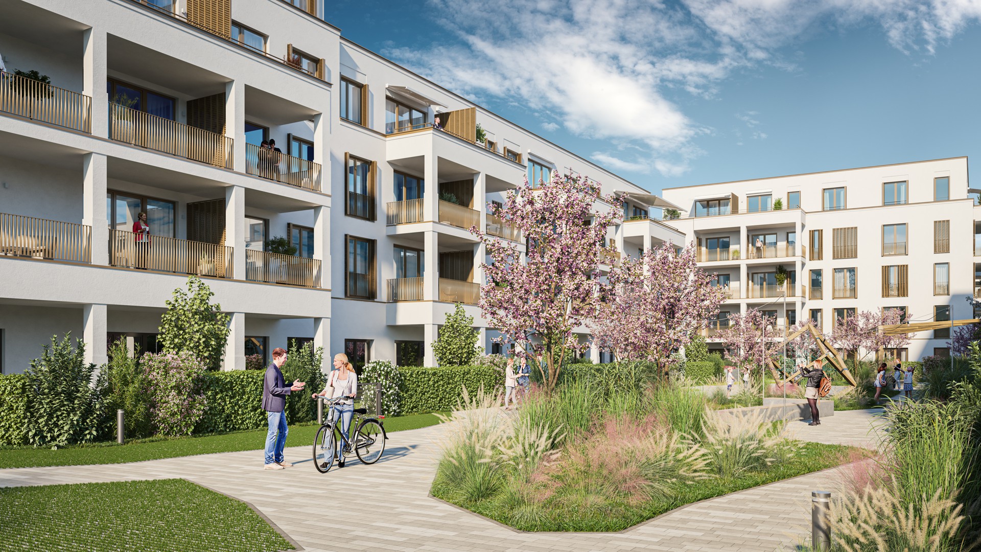 Auf dem ehemals gewerblich genutzten Grundstück am Fuße des Hohenaspergs entsteht ein neues Wohnviertel mit 250 Wohnungen sowie kleineren Gewerbeeinheiten. Im ersten von zwei Bauabschnitten stehen 94 Wohnungen nach den Plänen von ksg Architekten zum Verkauf. Für das Gesamtquartier sind großzügige Grünflächen, eine öffentliche Durchwegung mit Quartiers- und Aufenthaltsplätzen sowie weitere Tiefgaragenstellplätze geplant. Das Konzept sieht auch eine teilweise Begrünung der Fassaden vor.